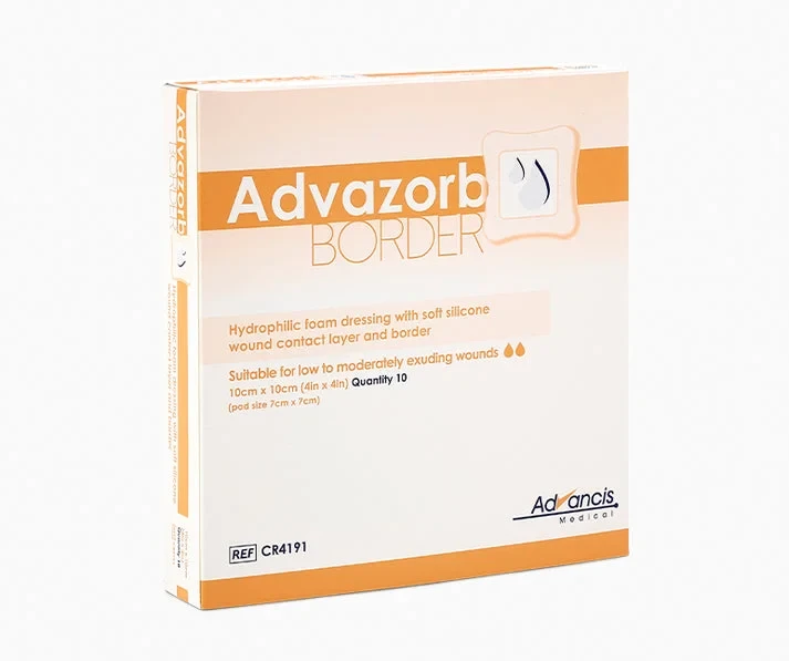Advazorb Border is an absorbent, atraumatic, self-adhesive bordered dressing with a unique perforated soft-silicone wound contact layer. This range is ideal for wounds with low to medium levels of exudate.
