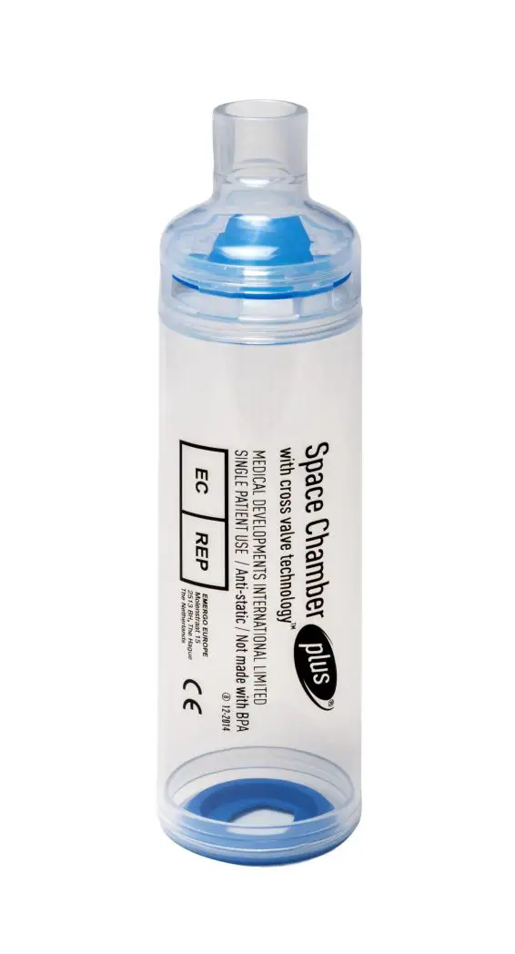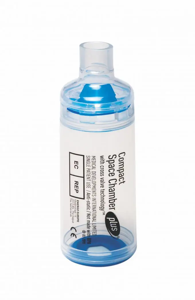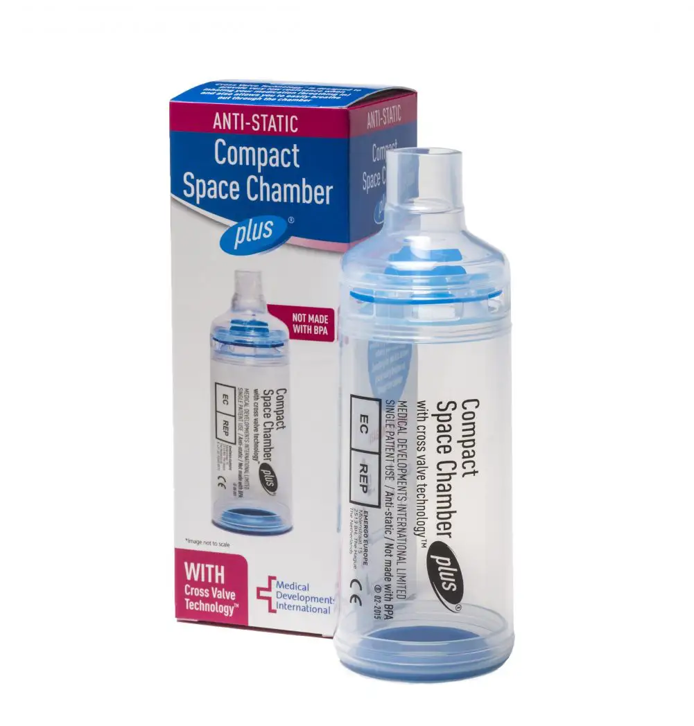 Designed to deliver more medication to the lungs than pMDI alone1, enabling patients with asthma and COPD to take control. Features Cross Valve Technology™ ensures very low resistance during inhalation and also allows easy exhalation through the chamber Transparent chamber Respiratory valves and their movement can be easily seen, allowing confirmation of correct product operation and usage Compatible with most types of pMDI (Metered Dose Inhaler) 22 mm outer diameter can be used with any international standard facemask Compact version easily fits into school bags, handbags or briefcases to allow easier storage and handling Universal inhaler base pMDI can be stored in the chamber