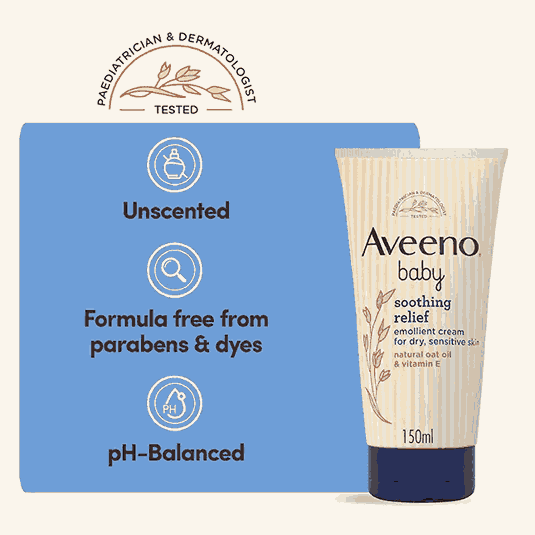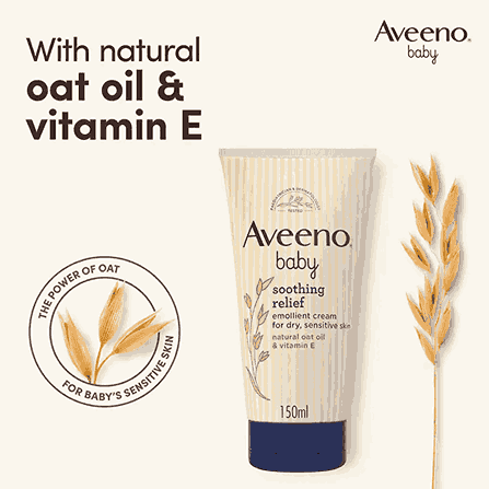 Enriched with Vitamin E and 100% pure oat oil, AVEENO® Baby Soothing Relief Emollient Cream is clinically proven to moisturise for 24 hours and helps soothe dry, sensitive skin prone to irritation and leaves skin feeling smooth, soft and healthy. AVEENO® Baby Soothing Relief Emollient Cream is also suitable for little ones who may be prone to eczema. It is pH-balanced, unscented and free from dyes. For a complete routine use with AVEENO® Baby Soothing Relief Emollient Wash.