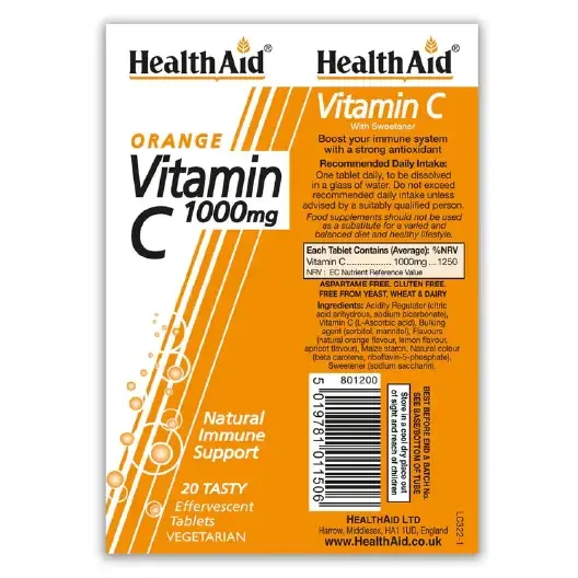 Vitamin C 1000mg Effervescent Tablets are dissolvable, refreshing, fruit flavoured tablets which make up into a drink containing a full gram of Vitamin C in a readily absorbable form. This product provides an alternative way of taking supplements, especially for those who have difficulty in swallowing tablets.