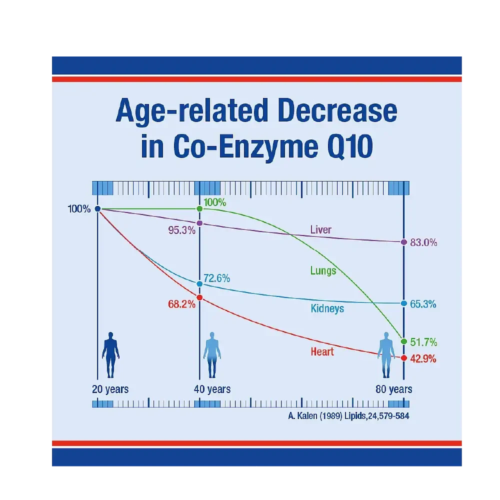 Whilst CoQ10 can be made in the body, production declines as we age. It has also been shown that cholesterol lowering drugs, called statins, reduce CoQ10 levels in the body, so people taking statins are increasingly recommended to take a CoQ10 supplement."