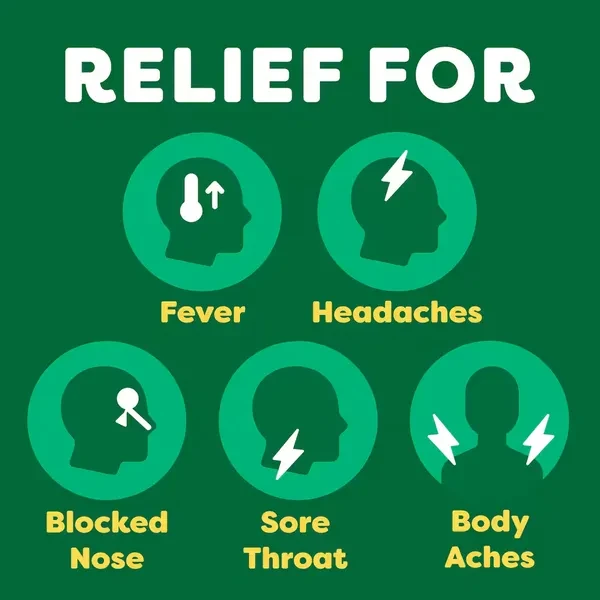 Lemsip Cold & Flu Sachets contain a combination of ingredients which are effective in relieving the symptoms associated with colds and flu, including relief of aches and pains, nasal congestion and lowering of temperature.