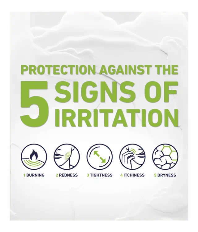 "Instantly protects skin from 5 signs of skin irritation: burning, redness, dryness, tightness, micro cuts