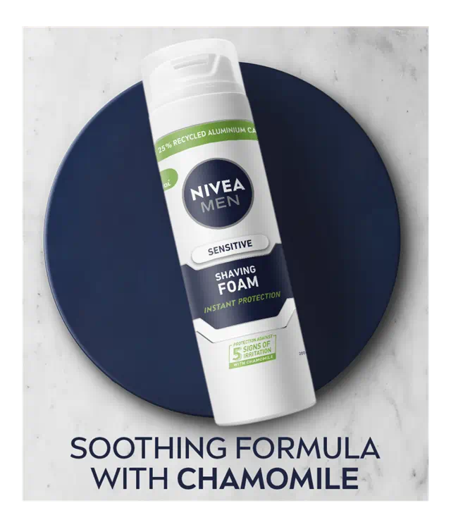 Shaving foam with Chamomile and Vitamin E softens the beard hair