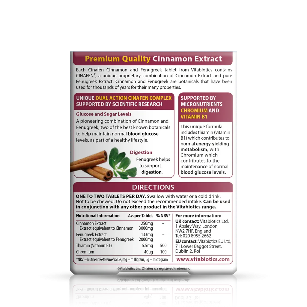 Cinnamon and Fenugreek are botanicals that have been used for thousands of years for their many properties. Cinnamon (Cinnamomum zeylanicum) is a spice from the dried inner bark of the Cinnamomum tree and Fenugreek (Trigonella foenum-graecum) is a fragrant herb of the pea family Fabaceae. Each Cinafen Cinnamon and Fenugreek tablet contains a unique proprietary combination of Cinnamon Extract and Fenugreek Extract.
